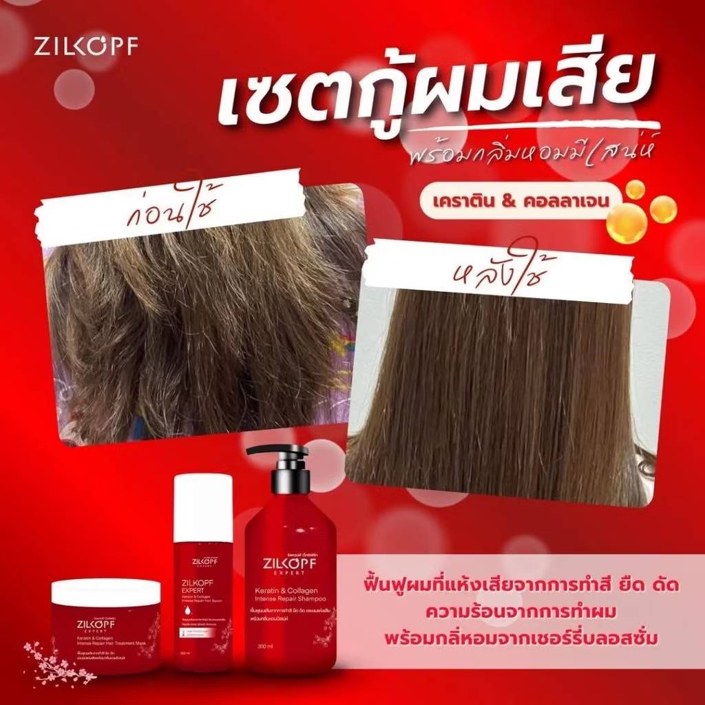 Zilkopf keratin&collagen intense repair hair serum เคราติน&คอลลาเจน อินเทนซ์ รีแพร์ แฮร์ เซรั่ม 200ml.